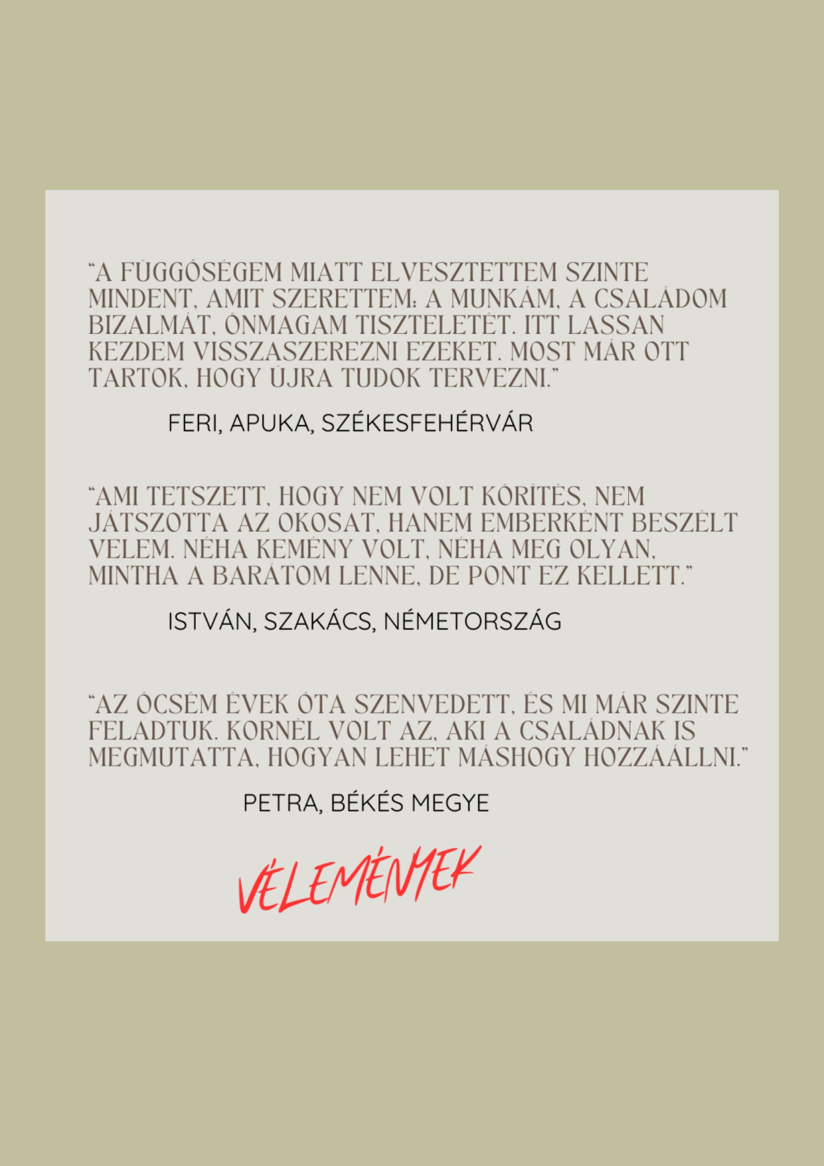 Mert a függőség nemcsak azt sebzi, aki szerhasználó, hanem mindenkit, aki mellette él. Téged is.